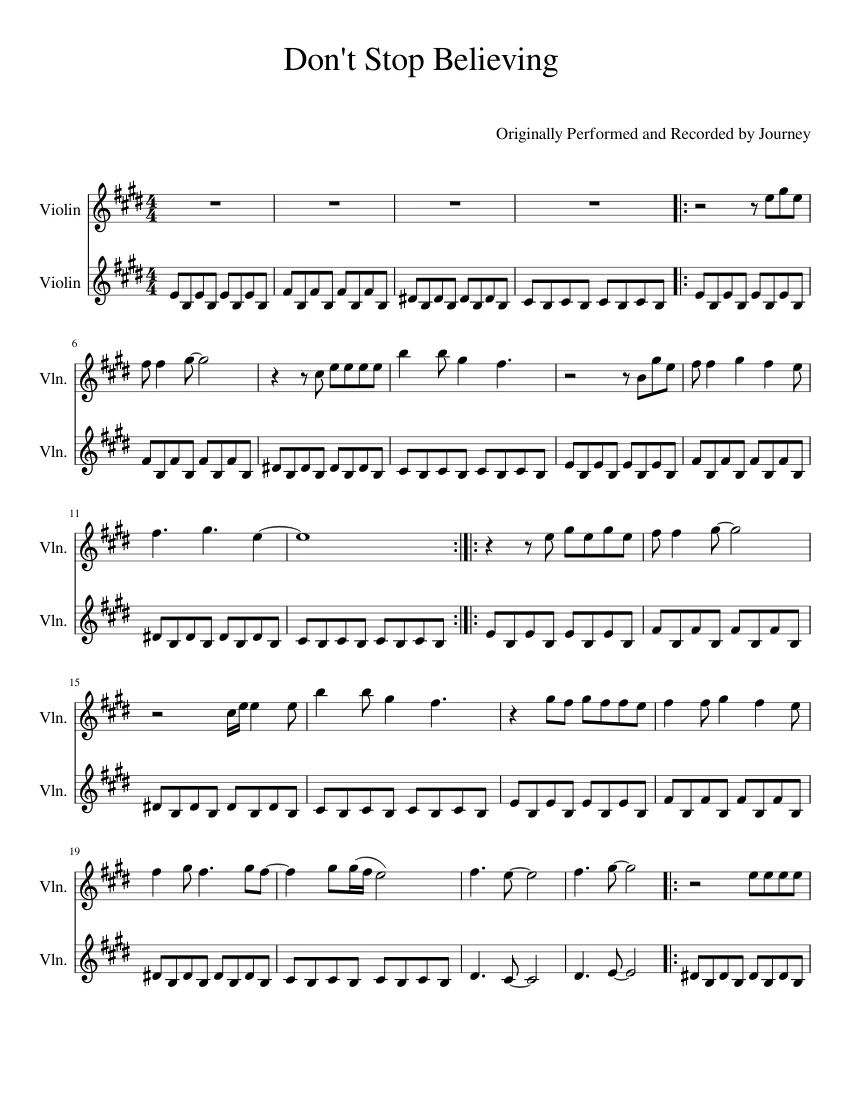 Don T Stop Believing By Journey Sheet Music For Violin Download Free