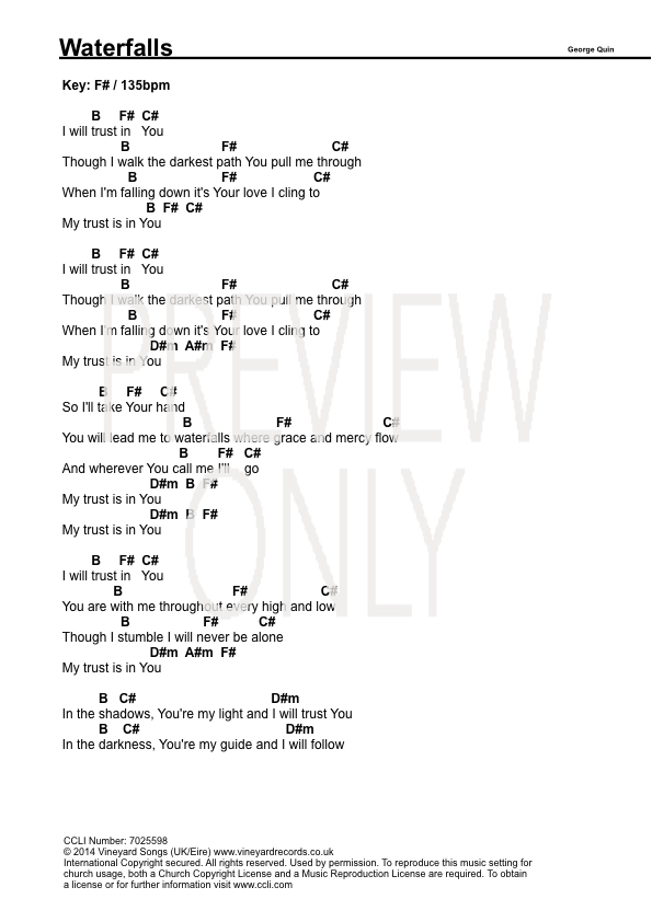 Waterfalls Lead Sheet Lyrics Chords Vineyard Worshiphouse Media