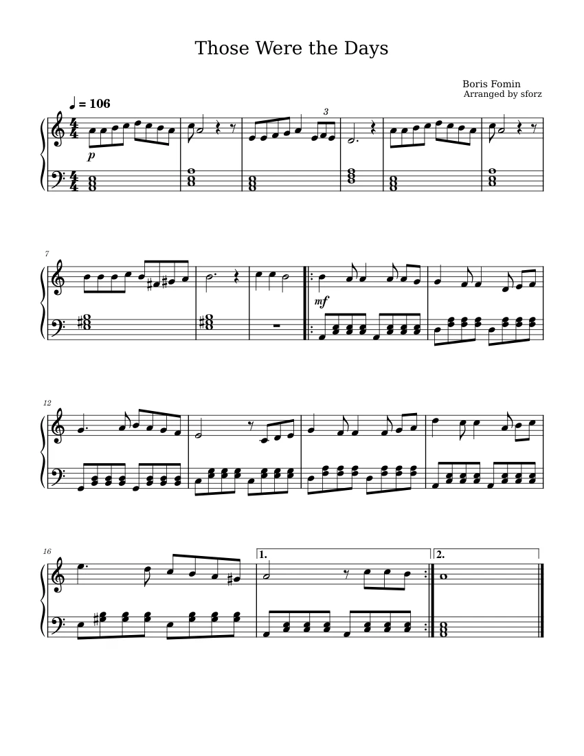 Those Were The Days Sheet Music For Piano Download Free In Pdf Or Midi