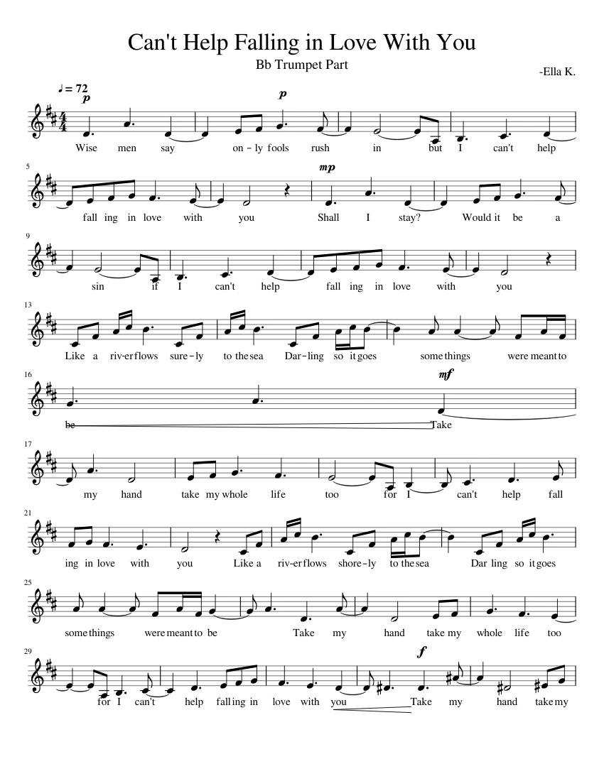 Can T Help Falling In Love With You Bb Trumpet Part Sheet Music