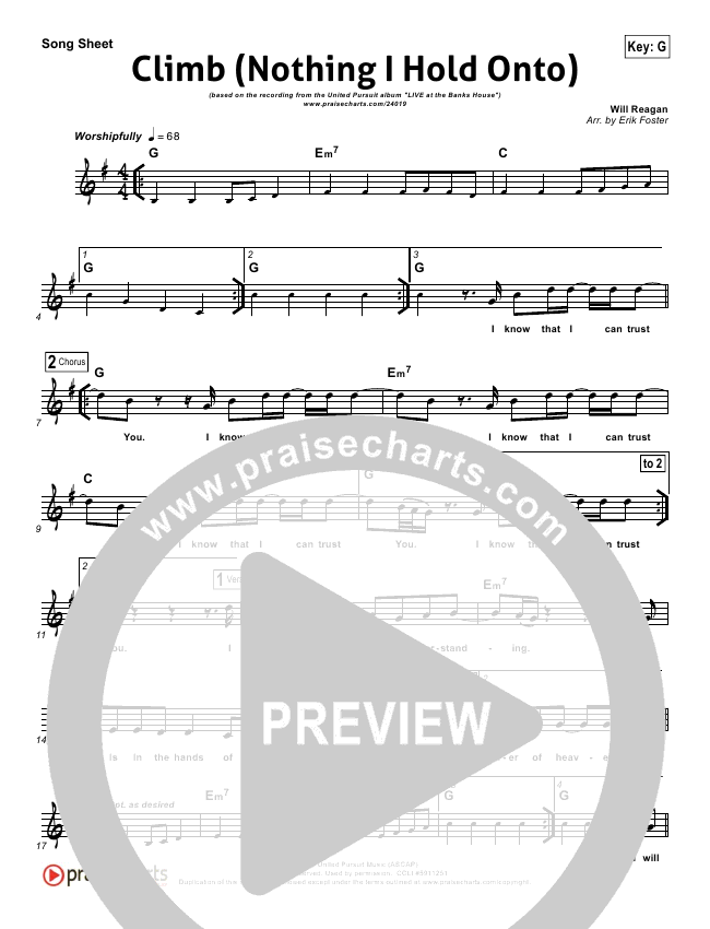Climb Nothing I Hold Onto Lead Sheet Will Reagan United Pursuit