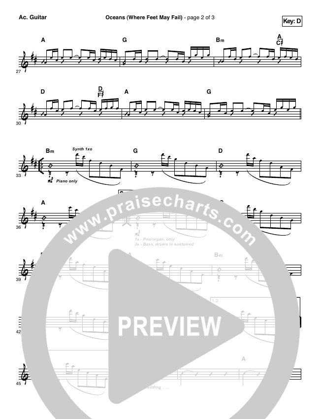 Oceans Where Feet May Fail By Hillsong Lesson Id 051615 Easy