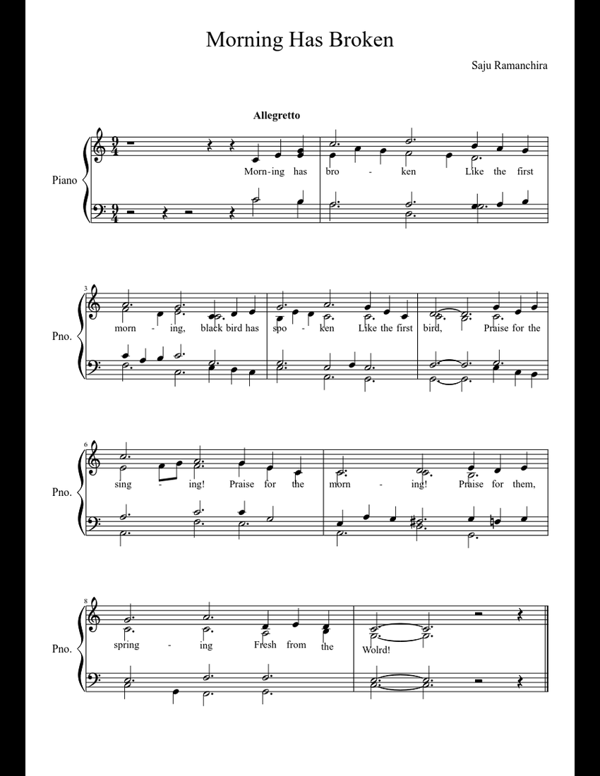 Morning Has Broken Sheet Music For Piano Download Free In Pdf Or Midi