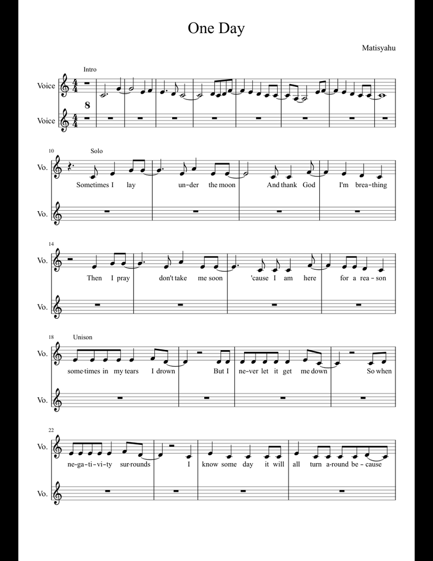 Matisyahu One Day Sheet Music For Voice Download Free In Pdf Or Midi