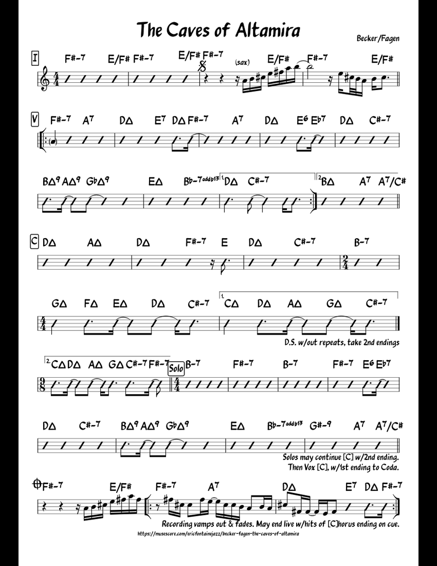 The Caves Of Altamira Steely Dan Chordsheet Sheet Music For Piano
