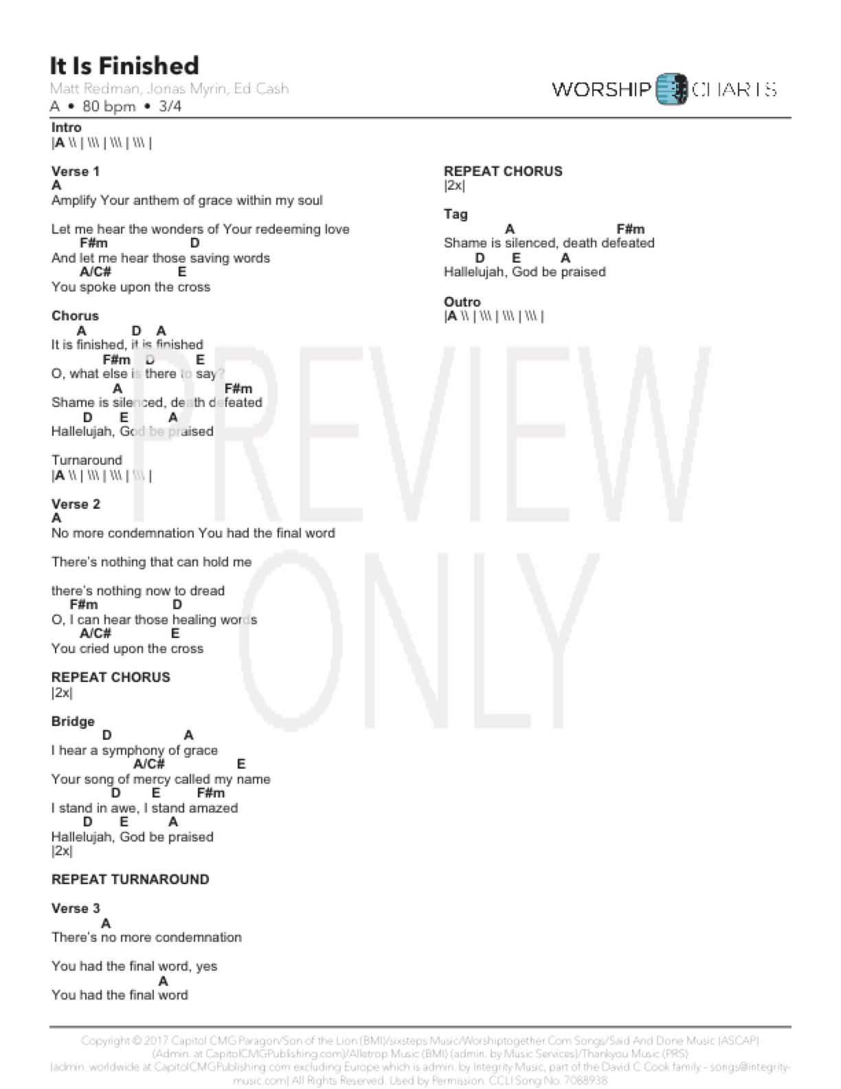 It Is Finished Lead Sheet Lyrics Chords Matt Redman
