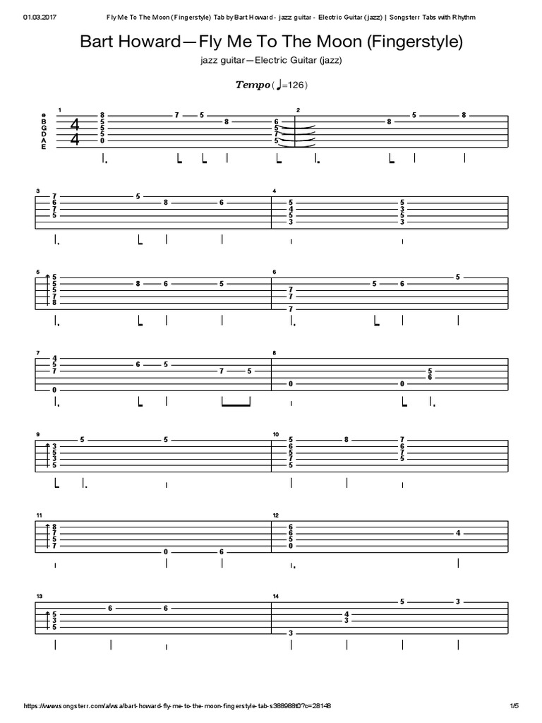 Fly Me To The Moon Fingerstyle Tab By Bart Howard Jazz Guitar