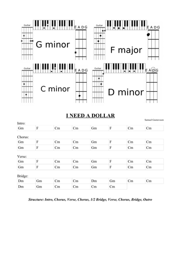I Need A Dollar Aloe Blacc Lead Sheet For Bass Guitar And Piano