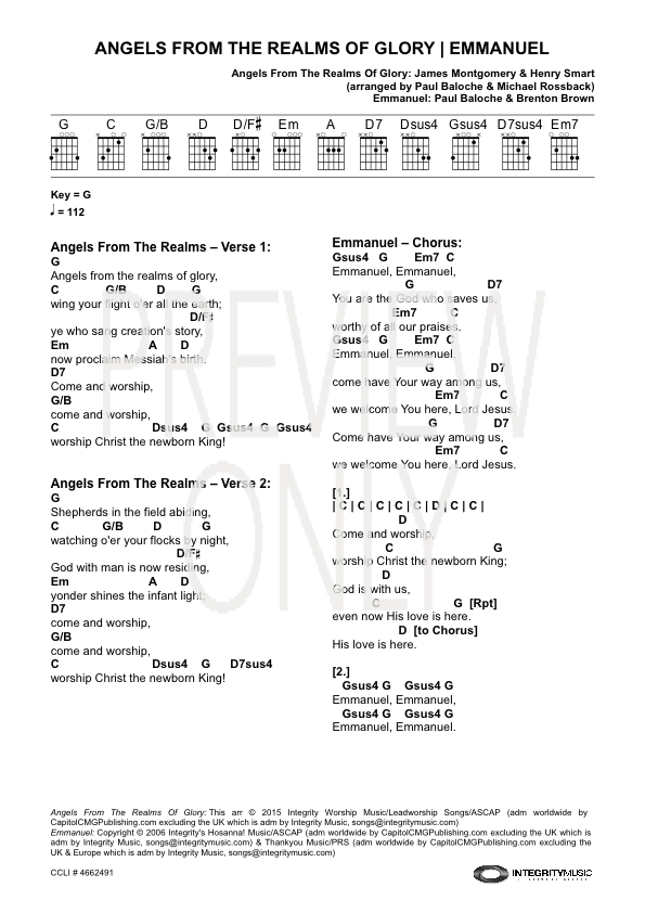 Angels From The Realms Of Glory Emmanuel Lead Sheet Lyrics