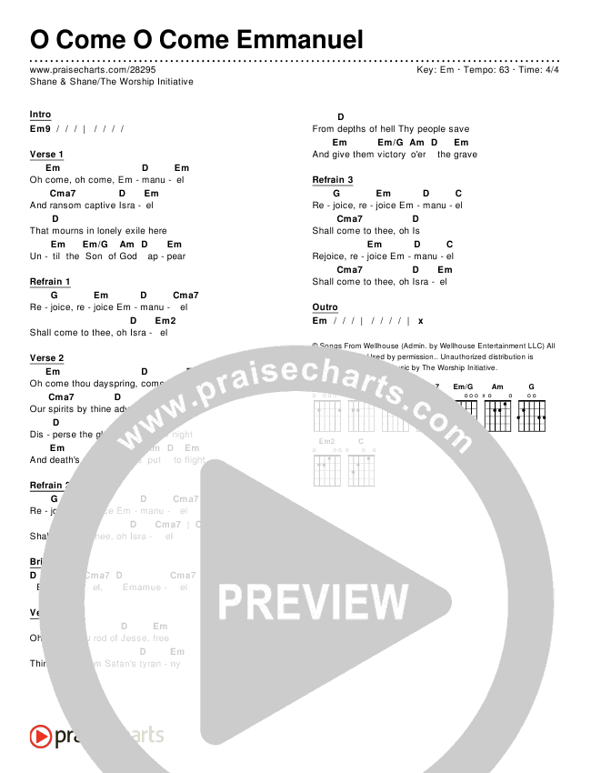 O Come O Come Emmanuel Chord Chart Editable Shane Shane The