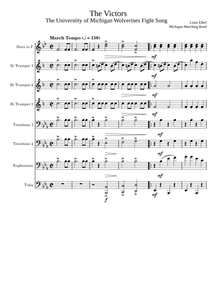 Michigan Fight Song The Victors Sheet Music For French Horn