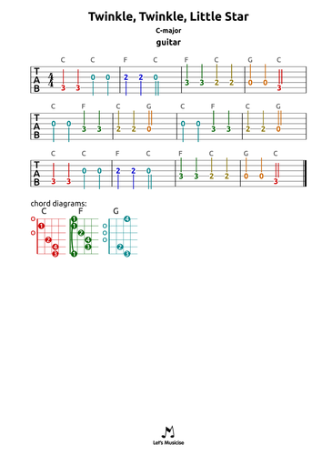Twinkle Twinkle Little Star Chords Sheet Music And Tab For