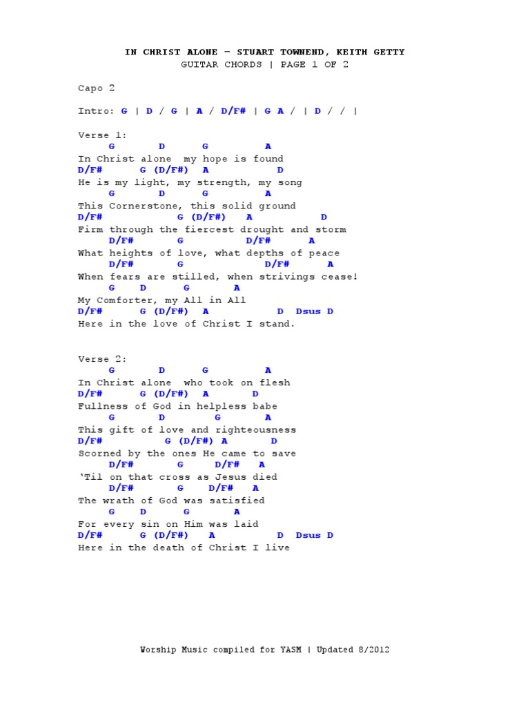In christ alone chords. In christ alone was actually the first song keith getty and i wrote together. This is my first tab so comments welcome. In christ alone chords by stuart townend learn to play guitar by chord and tabs and use our crd diagrams transpose the key and more.