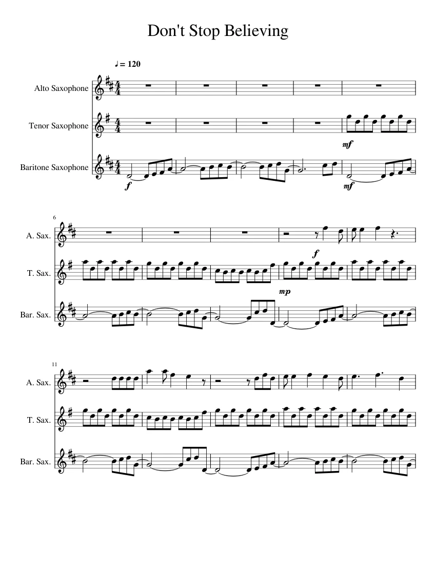 Don T Stop Believing Sax Trio Sheet Music For Alto Saxophone Tenor