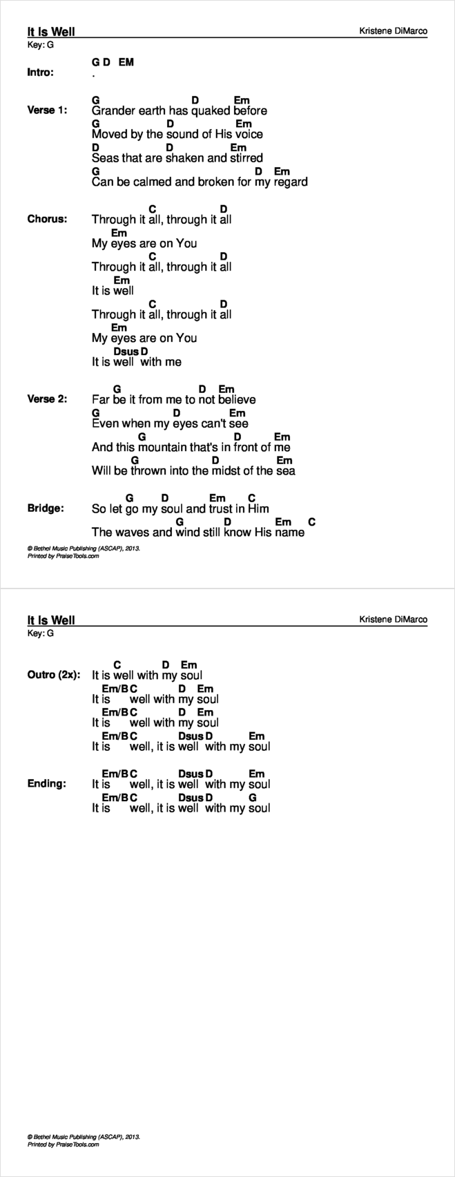 It Is Well Chord Chart Editable Kristene Dimarco Bethel Music
