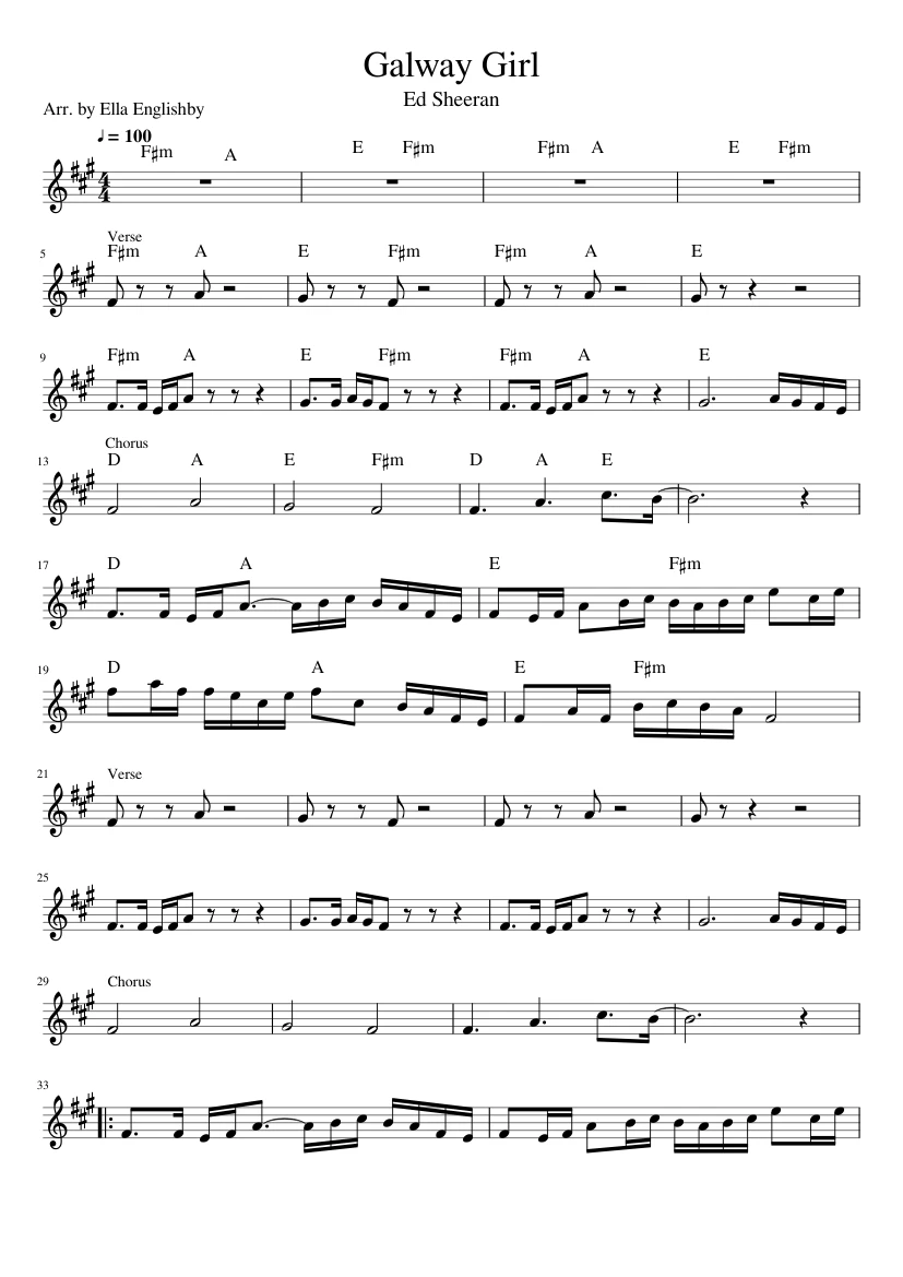 Galway Girl Ed Sheeran Updated With Chords Sheet Music For