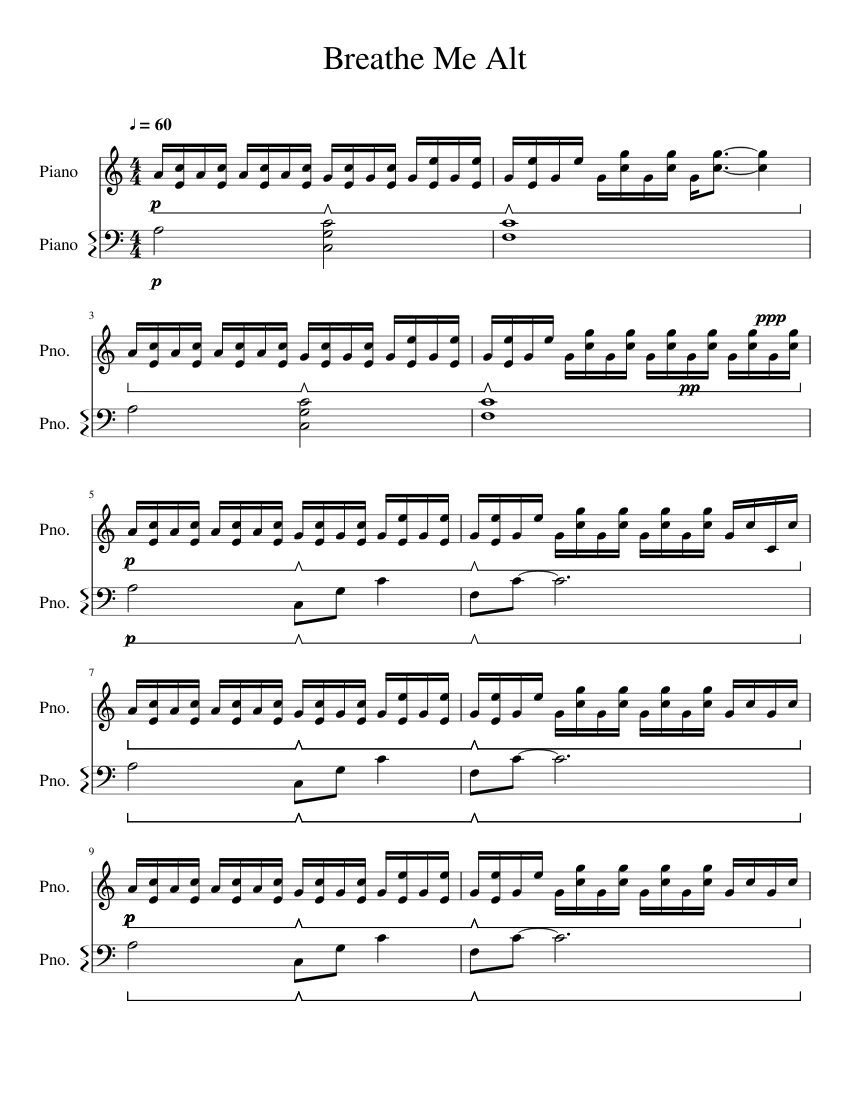 Breathe Me Alt Sheet Music For Piano Download Free In Pdf Or Midi
