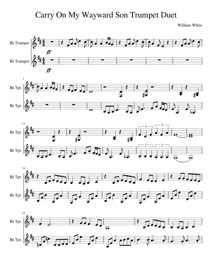 Carry On My Wayward Son Trumpet Duet Sheet Music For Trumpet