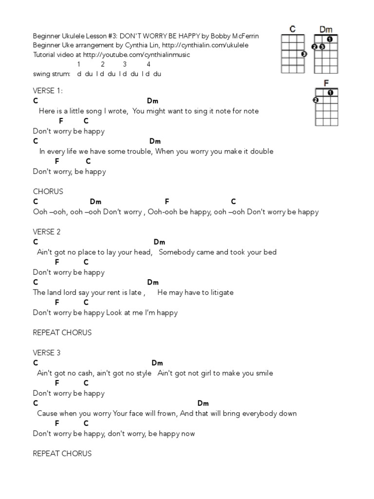 Don T Worry Be Happy Beginner Ukulele Chord Chart Pdf