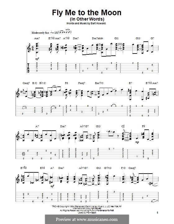 Jazz Song Fly Me To The Moon Tony Bennett With Chords Tabs And