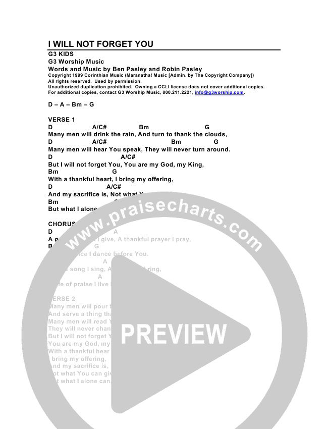 I Will Not Forget You Chords G3 Kids Praisecharts