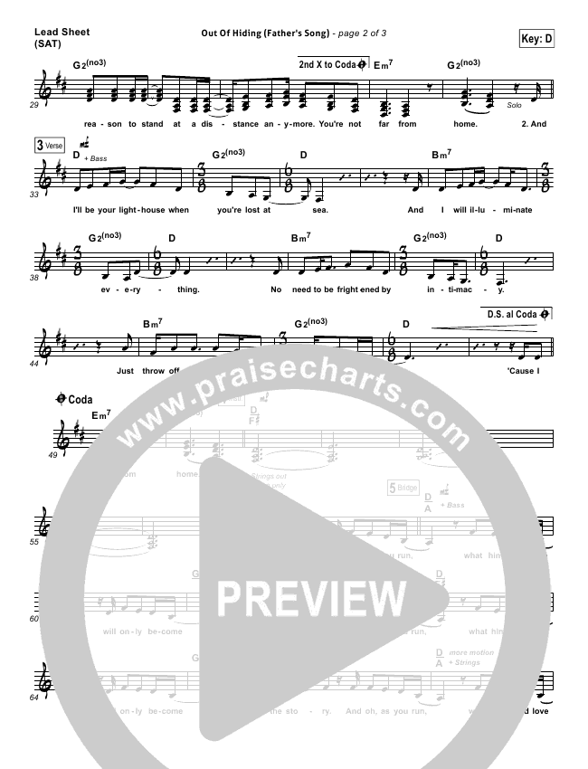 Out Of Hiding Father S Song Lead Sheet Piano Vocal Steffany