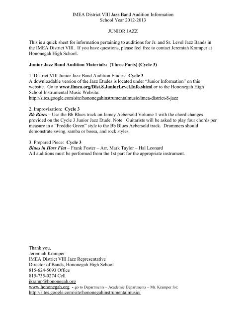 Imea District Viii Jazz Band Audition Information School Year 2012