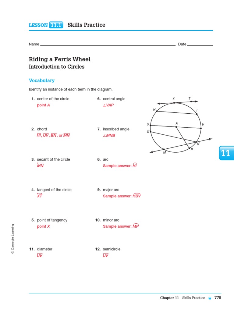 Ch 11 Skills Practice Answers Circle Perpendicular