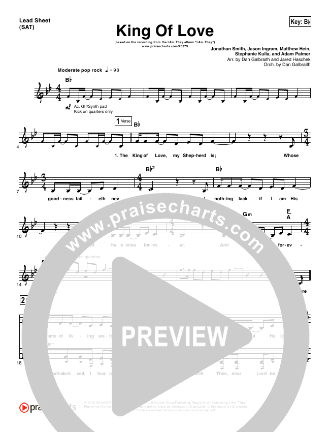 King Of Love Lead Sheet Piano Vocal I Am They Praisecharts