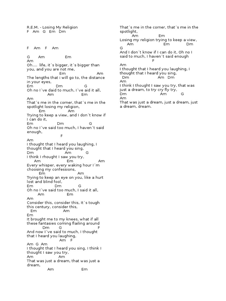 Losing My Religion By Rem Lyrics With Guitar Chords Uberchord App