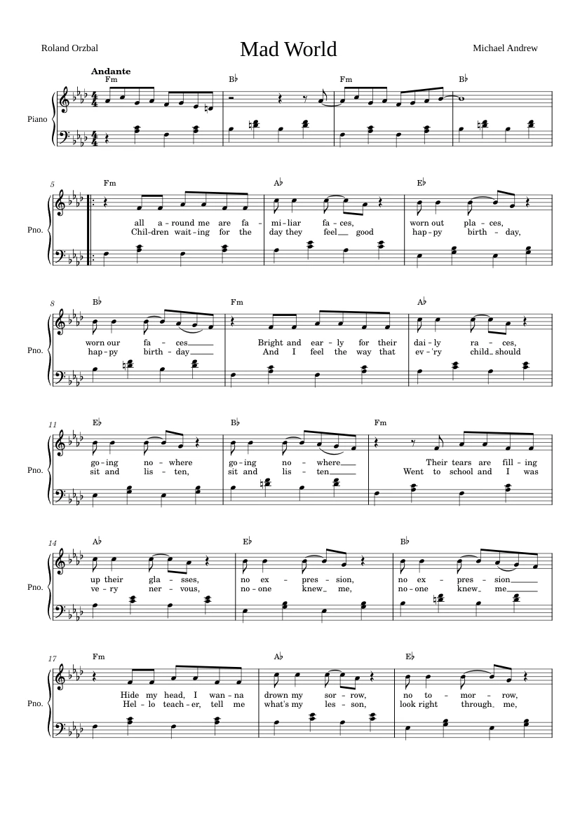 Mad World Piano Sheet Music For Piano Download Free In Pdf Or Midi