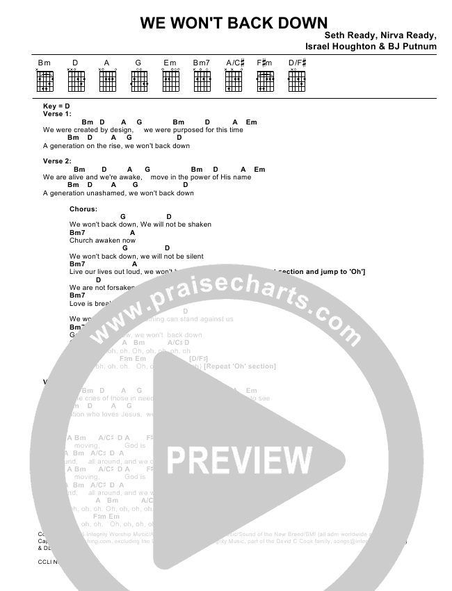 We Won T Back Down Chords Seth Nirva Praisecharts
