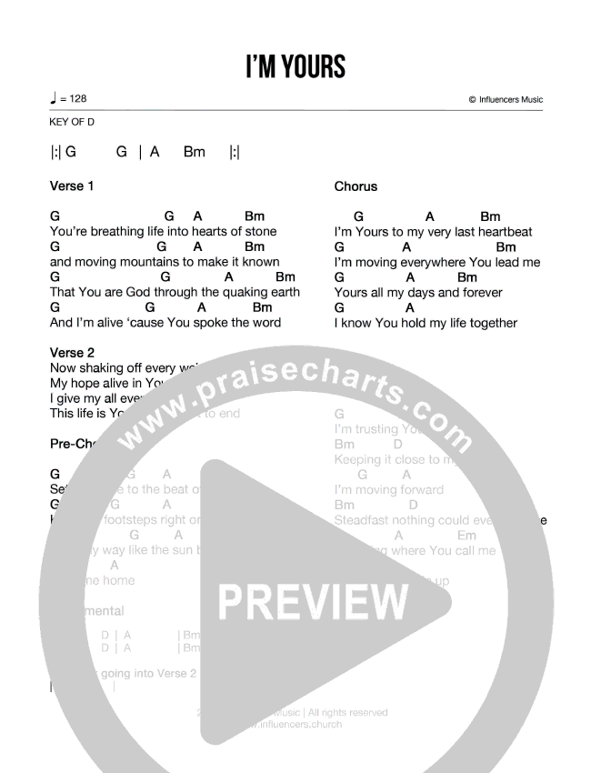 I M Yours Chords Influencers Worship Praisecharts