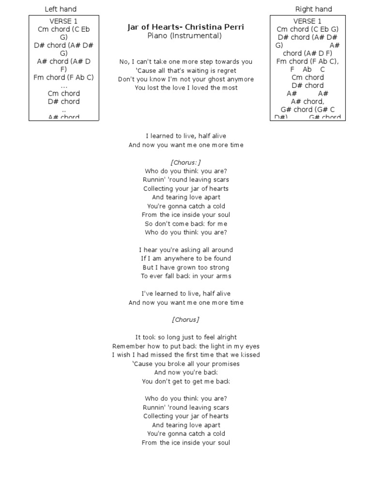 Jar Of Hearts Guitar Chords Lyrics Print Sheet Music Now