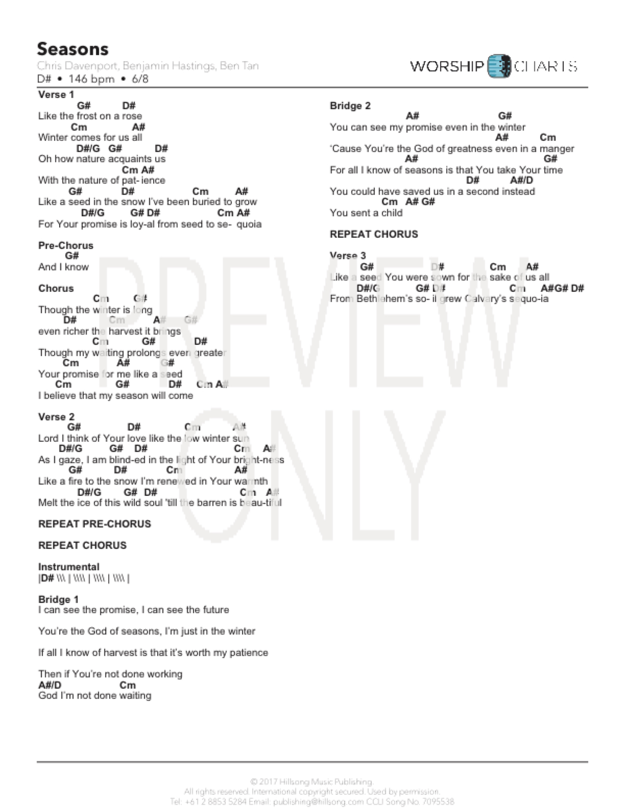 Seasons Lead Sheet Lyrics Chords Hillsong Worship
